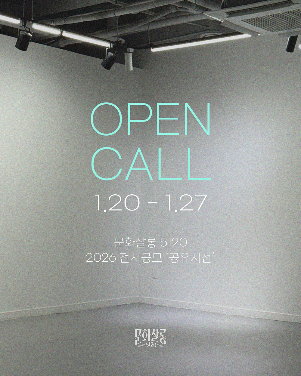문화살롱 5120은 동시대 예술을 둘러싼 실천과 담론이 교차하는 공공 문화예술공간으로서, 전시를 하나의 결과물이 아닌 실험과 협업의 장으로 고민하고 있습니다. 2026년 공모 '공유시선'부터는 이러한 방향성을 보다 분명히 하기 위해, 기존의 작가 중심 전시 공모를 기획 중심 공모로 개편합니다.본 공모는 동시대 미술을 바라보는 기획의 문제의식, 리서치 과정, 예술의 형식에 대한 사유에 주목합니다.